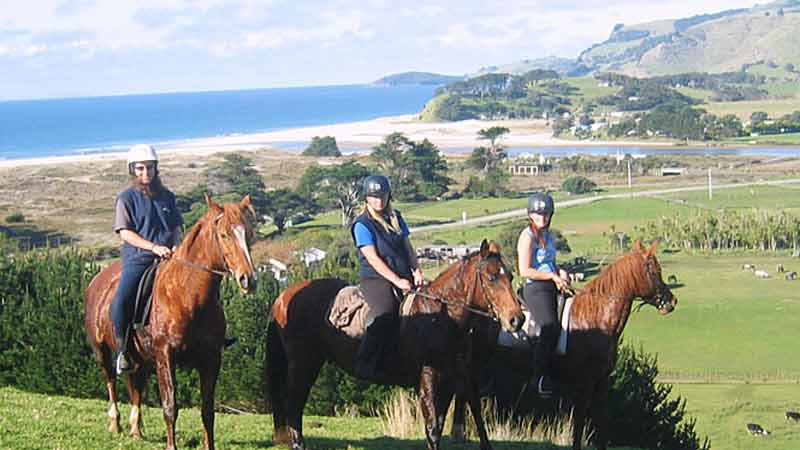 Riding for the Maori Marae at Leigh, we climb high above the white sands of Pakiri beach to the Pa (the lookout fortress) of the paramount chief Te Kiri. Here you will be able to look out over the ocean to the Barrier islands and the Hen and Chickens and Coromandel and also to Rangitoto and Auckland city in the distance. We will travel over beautiful farmland down to the little fishing township of Leigh. A short ride from there to Omaha Marae, a genuine Maori marae still run on the traditions of the past. Overnight we stay at the lovely Goat Island outlook Lodge where you can enjoy a hot spa or a cool swim in the pool. Or if there are more than 6 in your group you will all sleep the night together in the meeting house on mattresses on the floor as is the custom. You will be able to talk with the people and learn something of their history and their lives today.